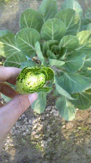 芽キャベツがそろそろ取れそうです。生は無理そう、やはりシチューかな