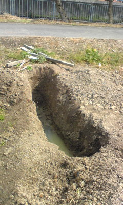 みずやりに行ったら、巨大な穴が…(ノ><)ノ