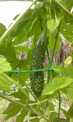 梅雨も終盤、トマトが大量の雨で炸裂するなかゴ-ヤができ始めました。
